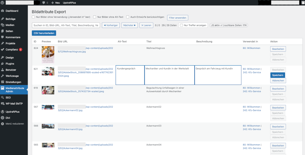 WordPress Plugin – Medienattribute Admin